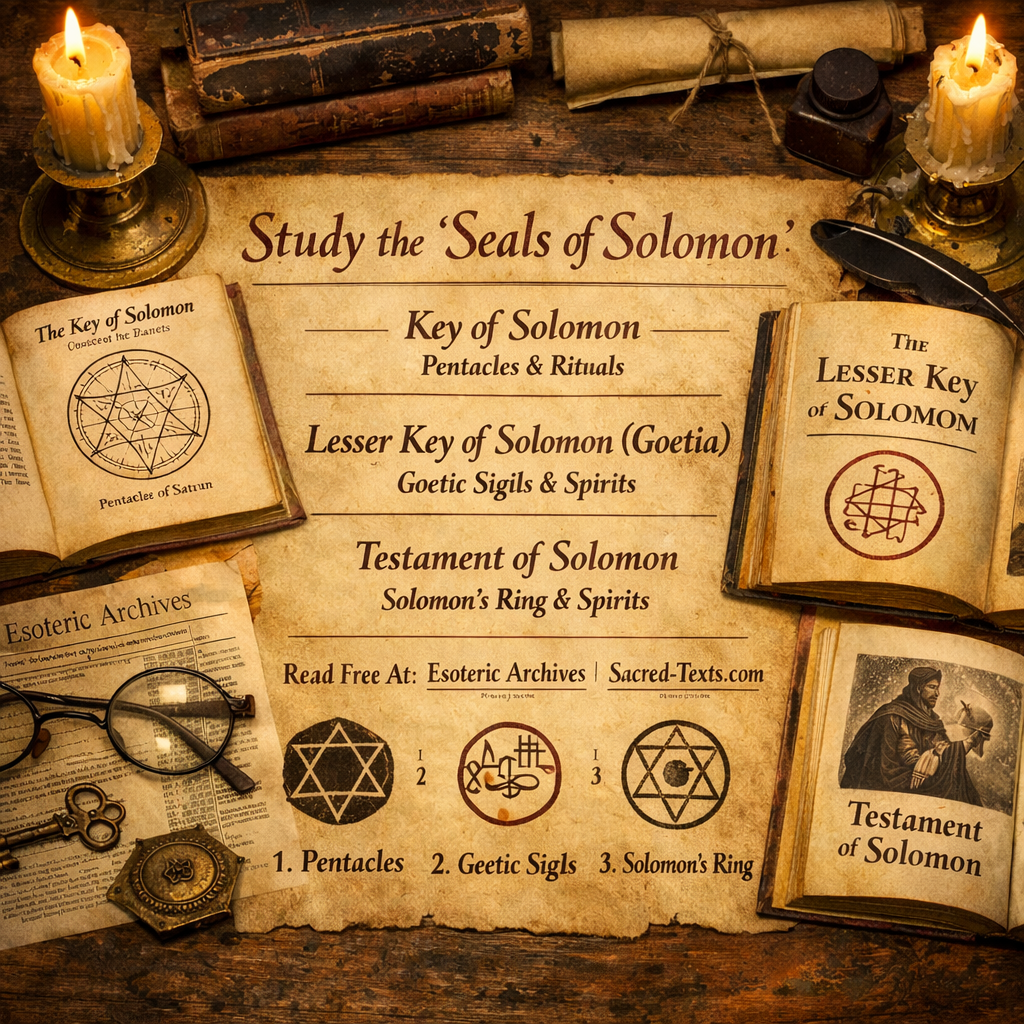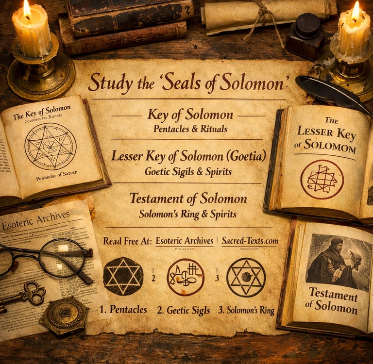 In this episode, I explore the Seals and Keys attributed to Solomon through the lens of shadow work rather than fear-based ritual or spirit-command. We look at how these ancient symbols—preserved in texts like the Key of Solomon, the Lesser Key of Solomon, and the Testament of Solomon—can be understood as mirrors of the inner world: our fears, patterns, unintegrated emotions, and hidden strengths.