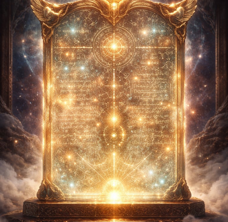 The Tablet of Destiny is not inked by hand, but inscribed in light — a cosmic blueprint etched before time itself. It contains the rhythms of divine timekeeping, the destinies of nations, the records of souls, and the unfolding of sacred law across the ages.
