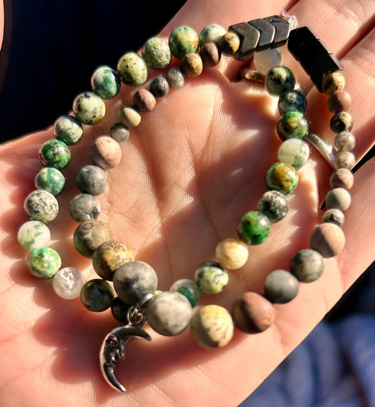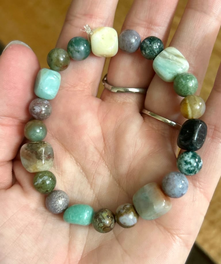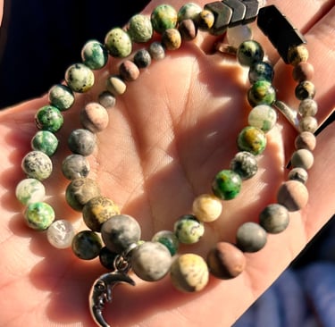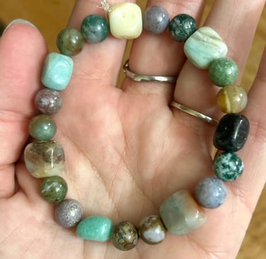 The Foundational Resonance Bracelet is an intuitively made stone bracelet created with grounding, balance, and clarity in mind. Each piece is designed slowly and intentionally, allowing the stones and pattern to form naturally.